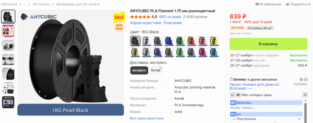 Внимание, моя субъективная оценка и не печатал, чисто отзывы пользователей, печатающих этими филаментами на FlashForge Adveturer 5M, но многие из них можно найти на OZON и локальных магазинах.
