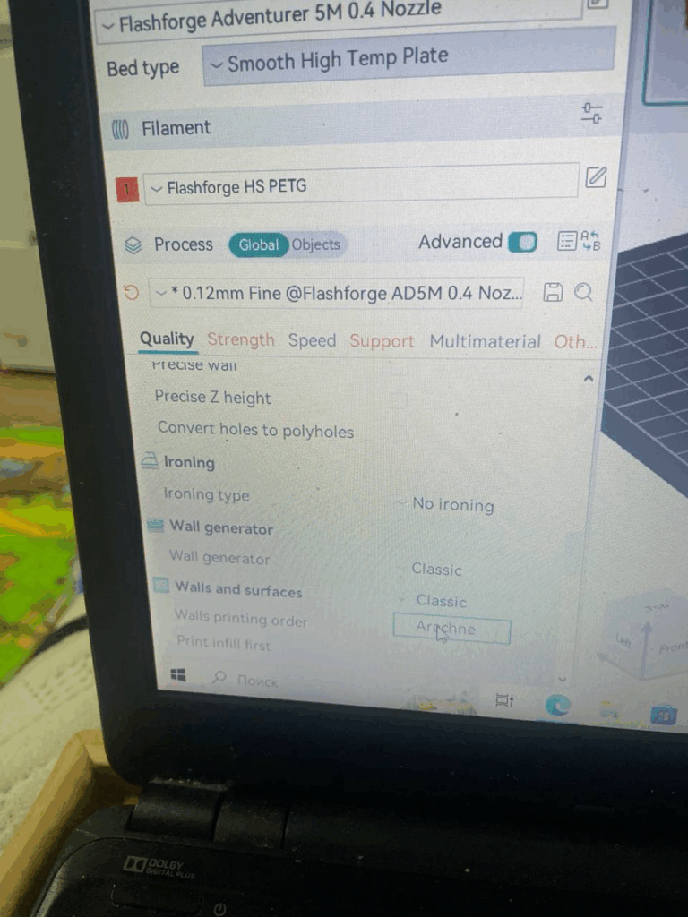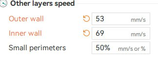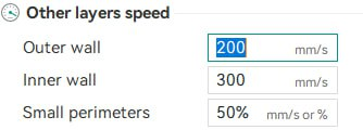 Снизил скорость печати периметров (Outer wall) до 200mm/s как на картинке ниже.