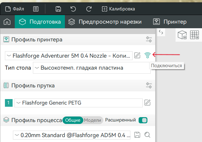 Как подключиться к принтеру FlashForge Adventurer 5M по Wi-Fi и передать модель?